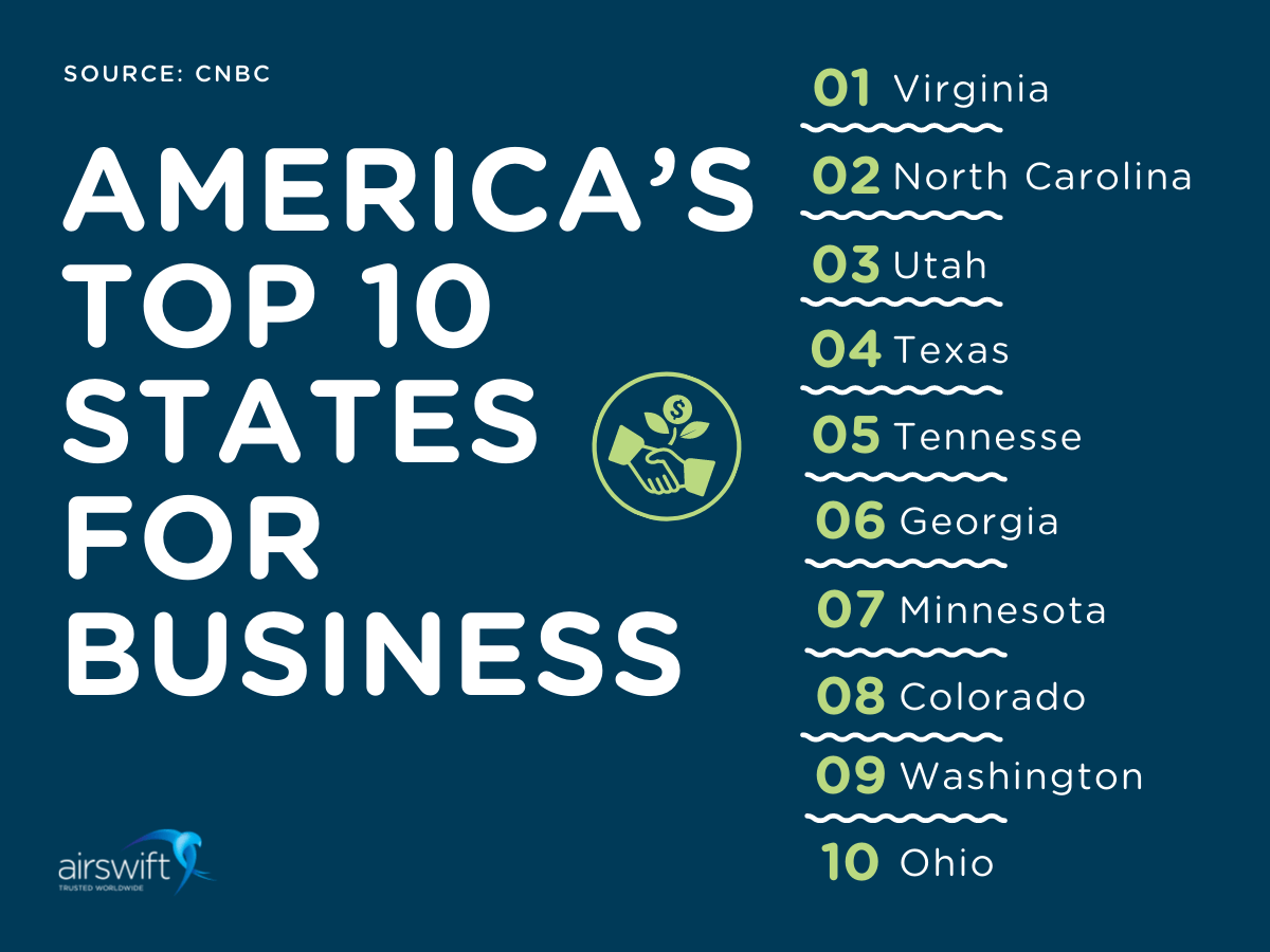 Looking at this ranking, we began to confirm the trend of greater business opportunities outside California. CNBC took many attributes into account: cost of living, access to capital, and even the availability of a qualified workforce.