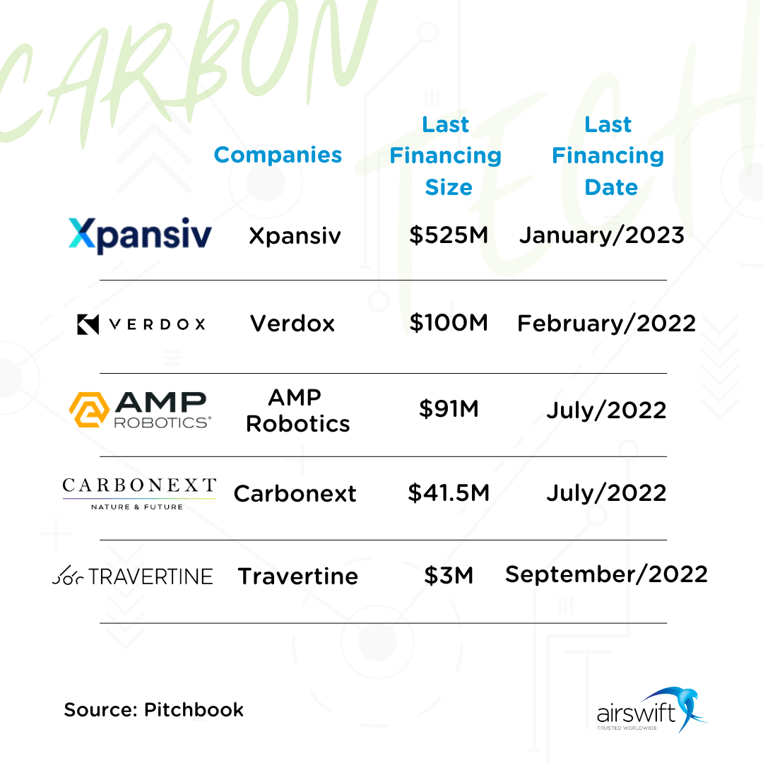 These companies got a substantial amount of funding to speed up their operations. Xpansiv is the parent company of CBL Markets, the world's leading spot exchange for carbon credits, as listed in this article. In its most recent round of venture capital funding, Xpansiv raised over half a billion dollars, making it the top player in carbon offset trading and associated environmental products.