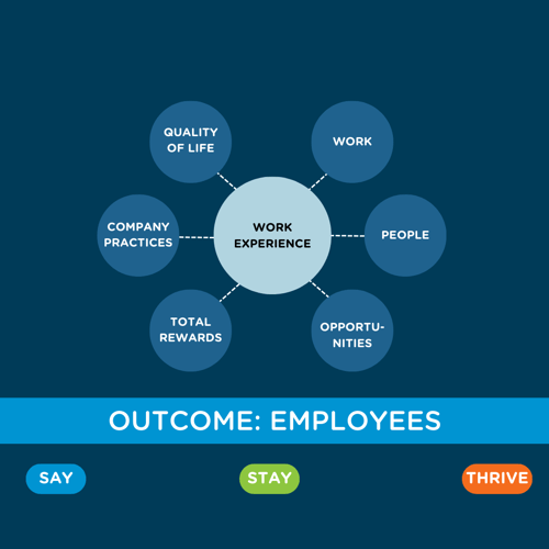 These elements collectively contribute to Say, Stay, and Strive, where employees express positive sentiments about their organisation, feel a sense of loyalty that encourages them to remain with the company, and are motivated to perform at their best.
