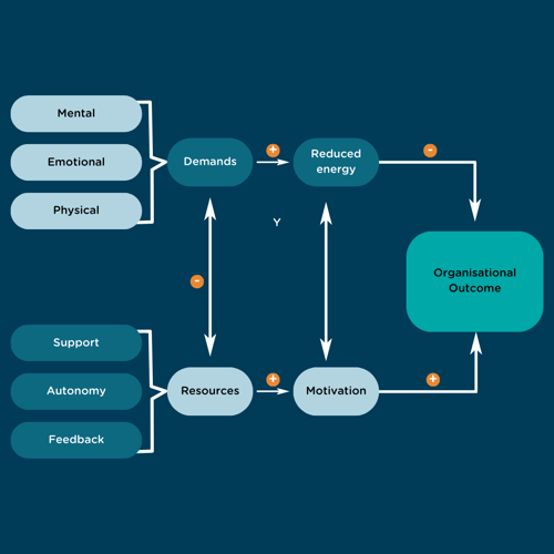 JD-R, which stands for Job Demands-Resources, is a framework that characterises workplace stress and strain as an imbalance between two fundamental components: