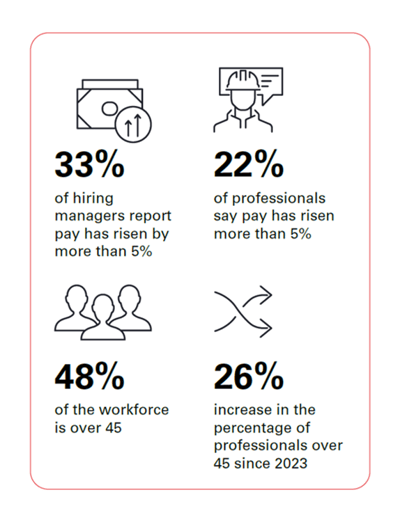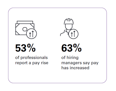 50% of workers reported a pay increase this year (unchanged from 2025). 60% of hiring managers say pay has increased, and 67% of professionals expect a pay rise next year.