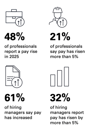 In traditional energy, salary increases have rebounded after the challenges of 2021 and 2022, with 50% of professionals reporting a pay rise in 2025. However, for the first time since 2021, the proportion of professionals seeing raises over 5% has decreased, signalling a potential slowdown in salary growth. Despite this, a positive outlook persists, with 71% of professionals expecting further pay increases next year, up from 49% in 2021.