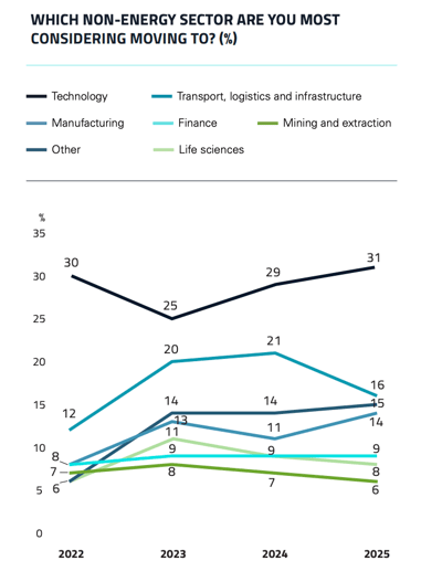The growing demand for energy expertise extends beyond the sector itself. In 2025, professionals received an average of 6.08 external job offers - up from 5.71 in 2023.