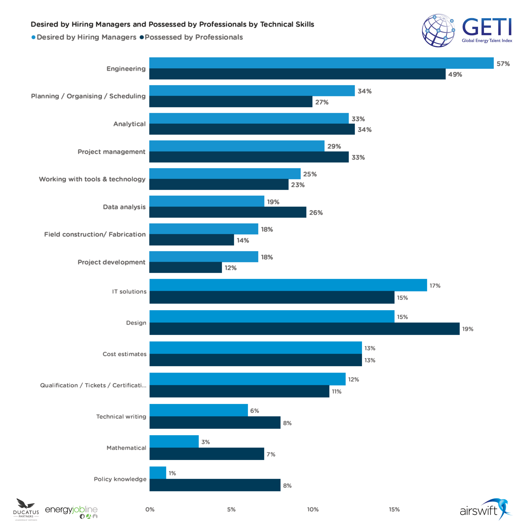 As we have shown, Renewable energy jobs are pretty promising. Our annual Global Energy Talent Index (GETI) report lists the technical skills desired by hiring managers. We also compare those skills with the ones already possessed by professionals.