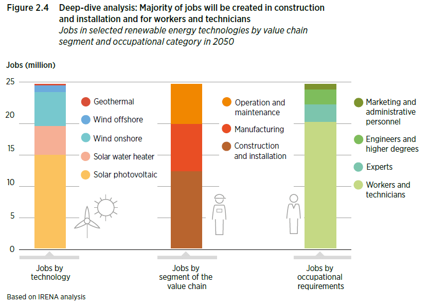 42 million renewable energy jobs will be created by 2050, according to IRENA