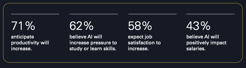 Despite these figures, there is some optimism surrounding AI in the oil and gas workforce. 71% of those surveyed believe that AI adoption will increase productivity, while 62% feel it will increase pressure to learn new skills. 58% expect to experience improved job satisfaction due to AI use, and 43% anticipate salary increases as a result.