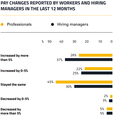 graph showing pay changes reported by oil and gas workers and hiring managers in GETI 2025