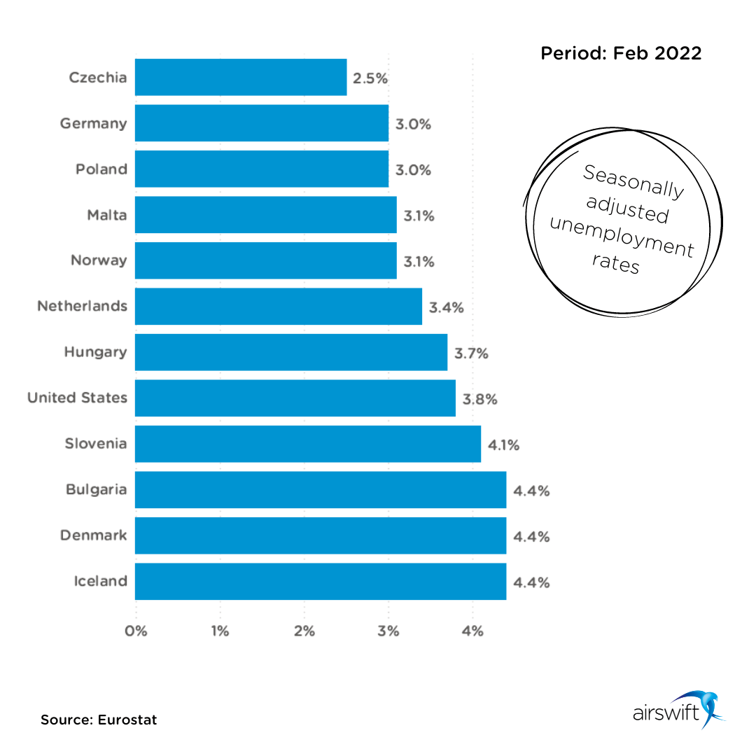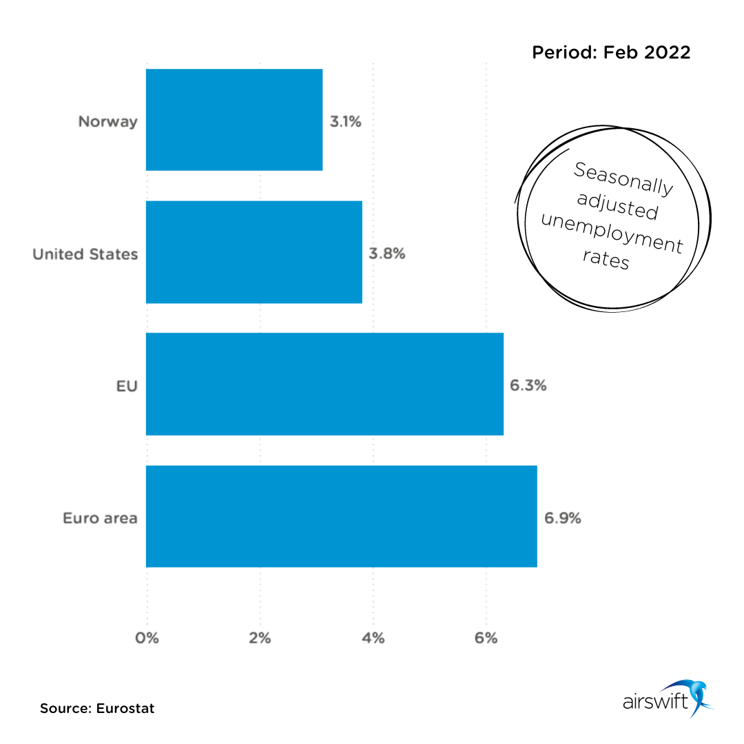 It is not difficult to get hired in Norway as it has a low unemployment rate, and with the shift to remote work, international hiring has become more frequent. In February 2022, the rate stood at 3.1%, one of the best indexes among the countries in the Euro Area.