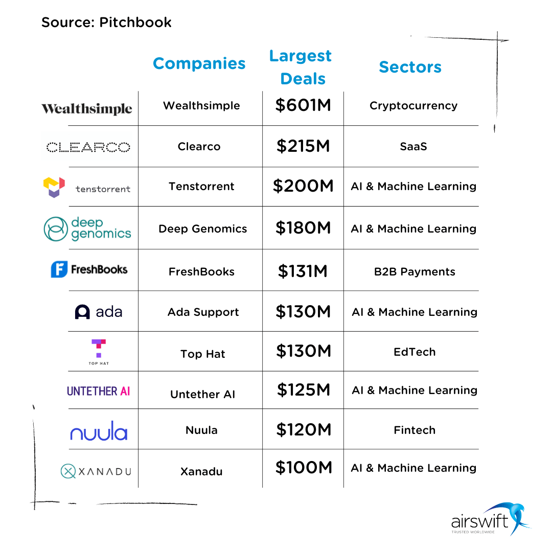 Taking a closer look at this scenario, let's highlight the Toronto HQ-based companies that received the most venture capital investments in 2021 below.