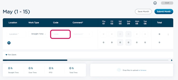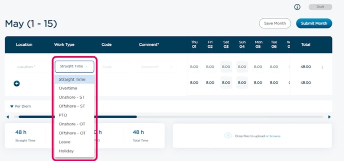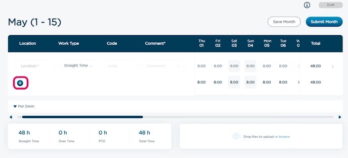 New lines can be used when you worked with multiple locations, work types or project codes within a single month.
