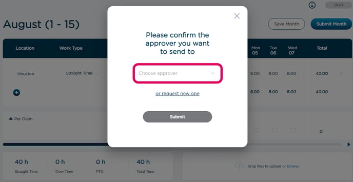 Tip: If you can't find your approver to select, click "request a new one" to request that a new approver is added.