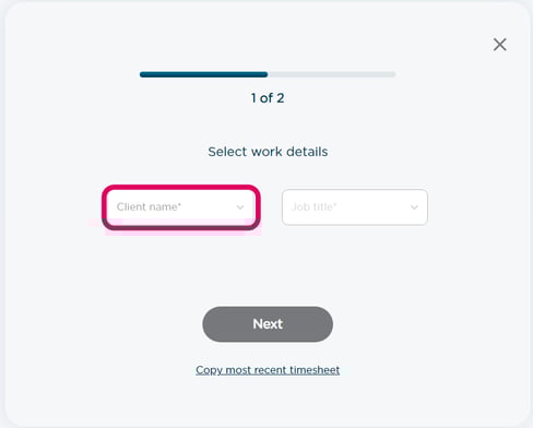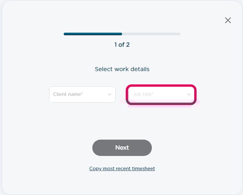 3. Select your job title for the timesheet. Once the client company and job title are selected, click "Next".