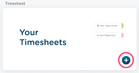 1. Open a new timesheet by clicking the plus sign on the corner of the timesheet card.
