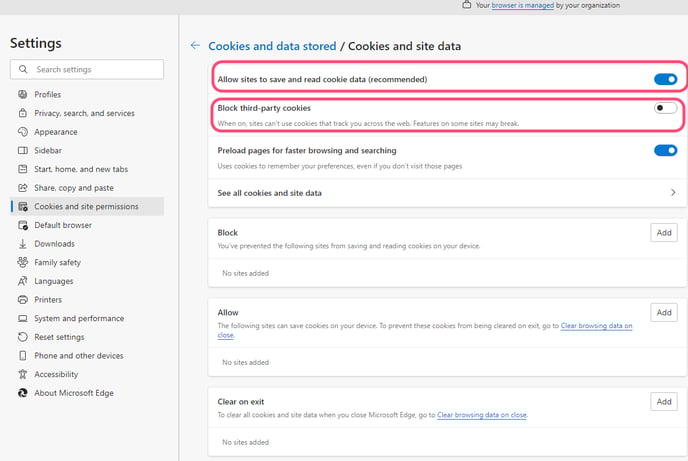 If your cookies settings already matches the instructions, skip straight to the next step.