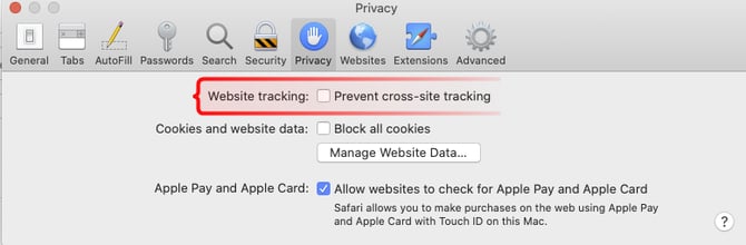 1. Why do I have to disable the "prevent cross-site tracking" settings?