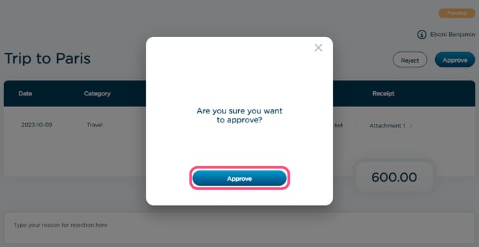 b. Confirm your approval decision by clicking ‘Approve’ again in the popup window
