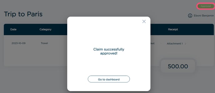 After Approval:- Expense status changes to "Approved"