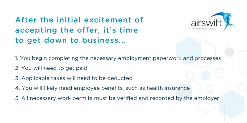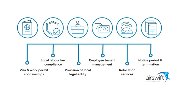 Understanding the laws that govern immigration processes is a daunting aspect of international hiring. Airswift works with international employees to help get the correct visas and permits for their new work location.