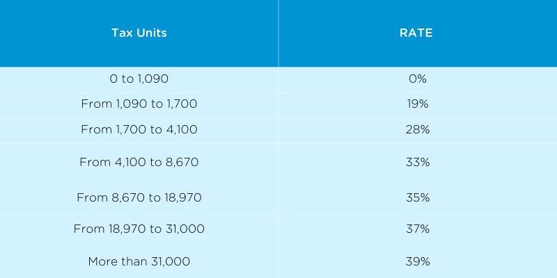 Workers are subject to income tax in Colombia. Refer to the table below for a breakdown of the tax contribution rate according to income bracket: