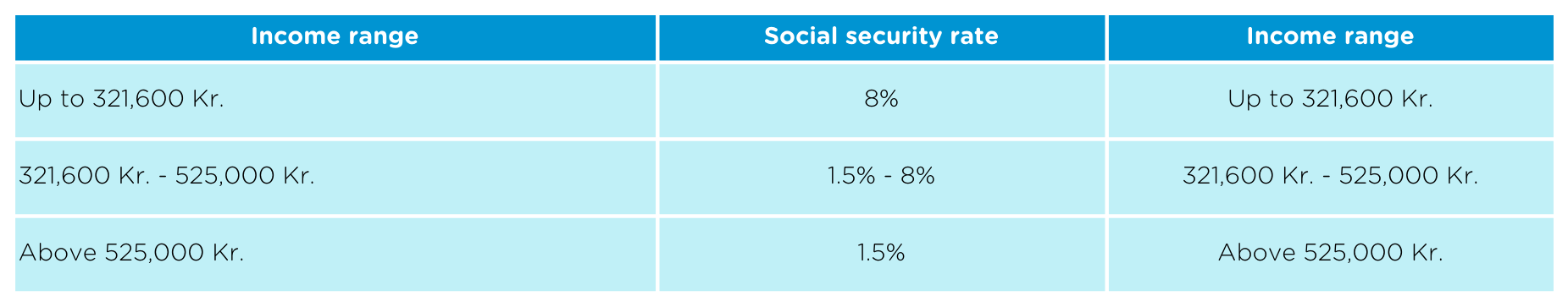 Table 2: Social security rates based on income range