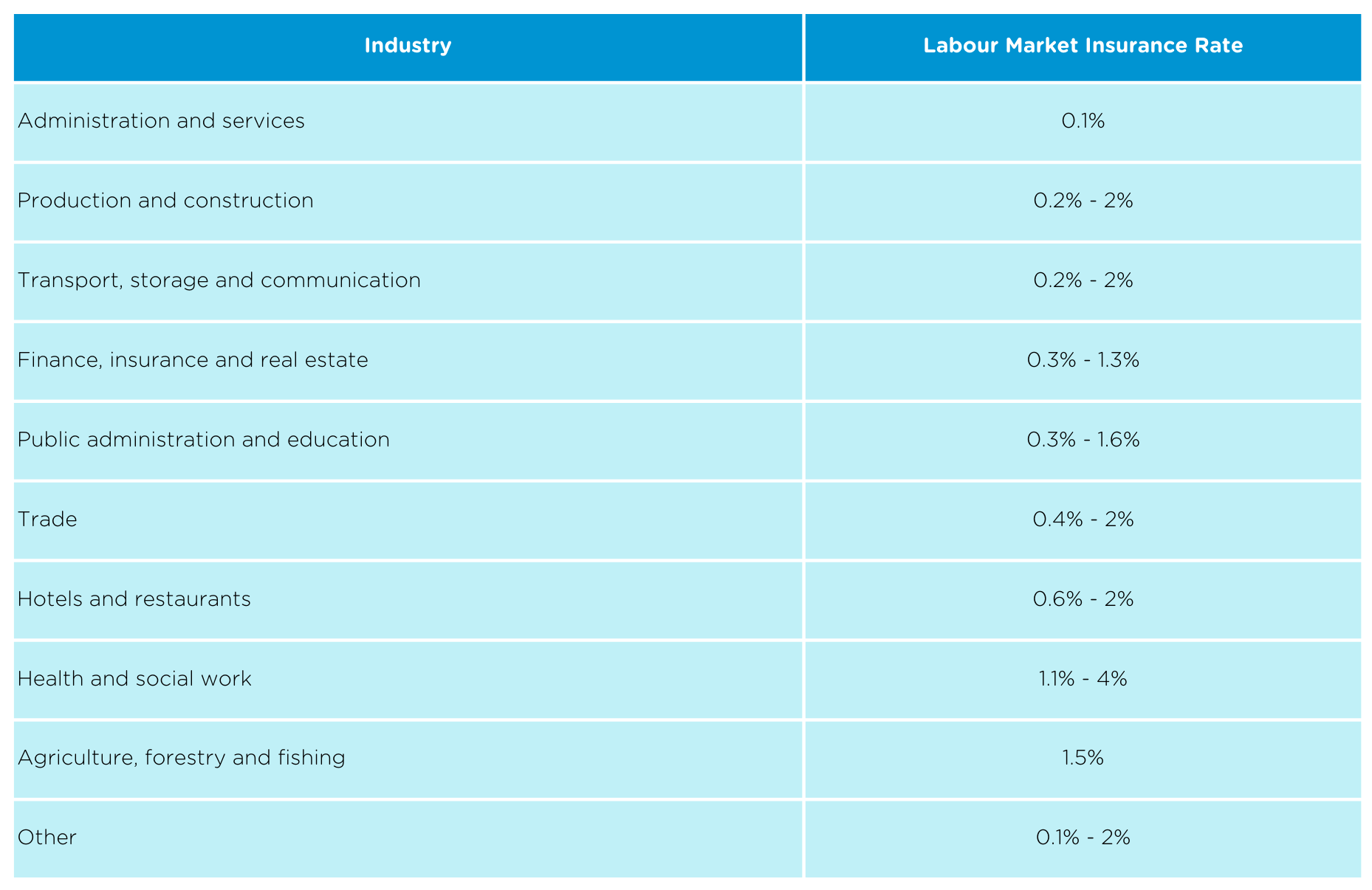 Table 3: Labour market insurance rate based on industry