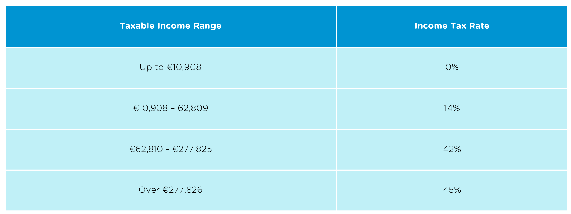 Income tax is the largest deduction from an employee's gross salary. In Germany, income tax is progressive, meaning that the more an employee earns, the higher their tax rate will be, as illustrated in the table below. The income tax rates range from 0% to 42%, depending on an employee's income level. Employers are responsible for deducting income tax from their employee’s salaries and paying it to the relevant tax authorities.