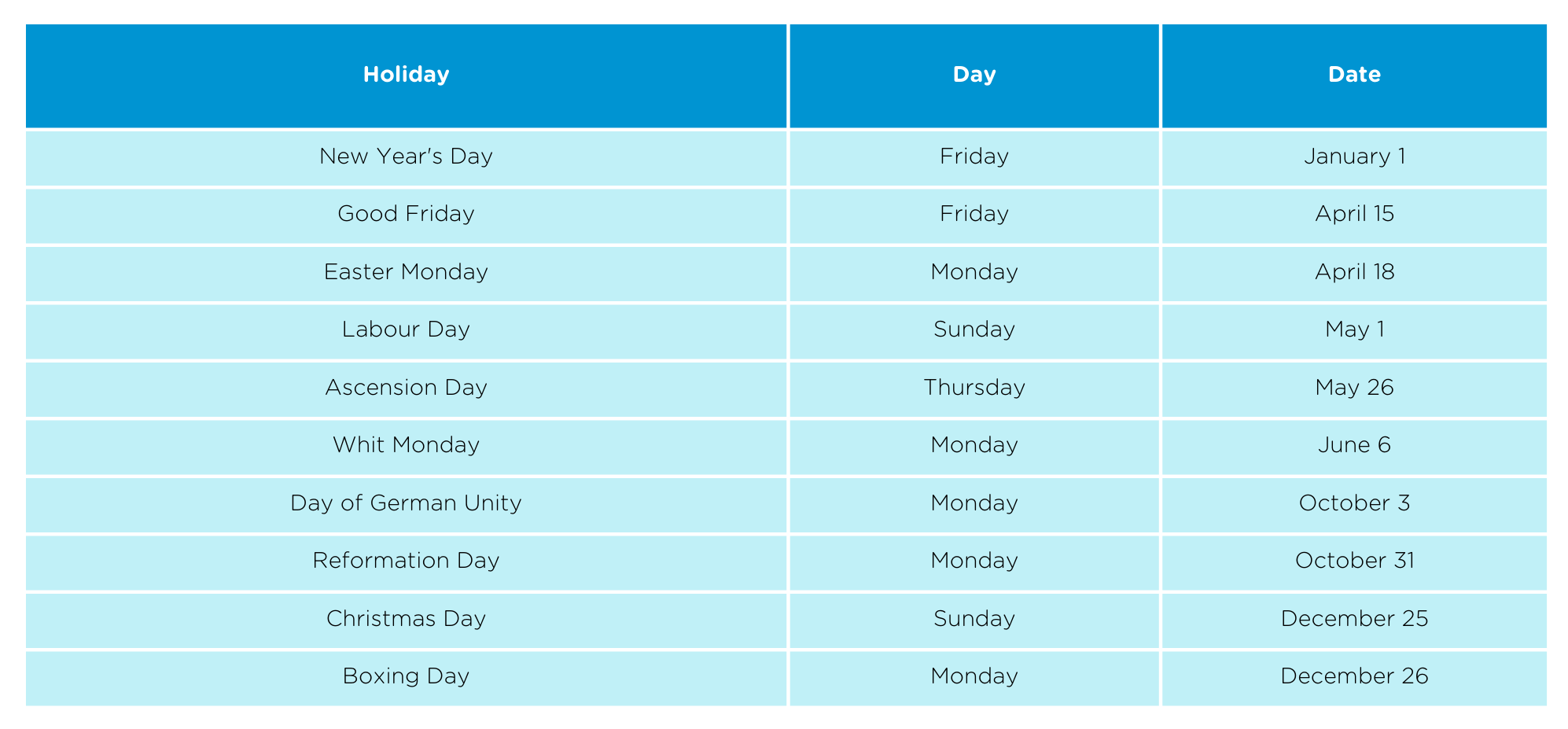 Note that some of these holidays may be observed on different days depending on the state or region in Germany.