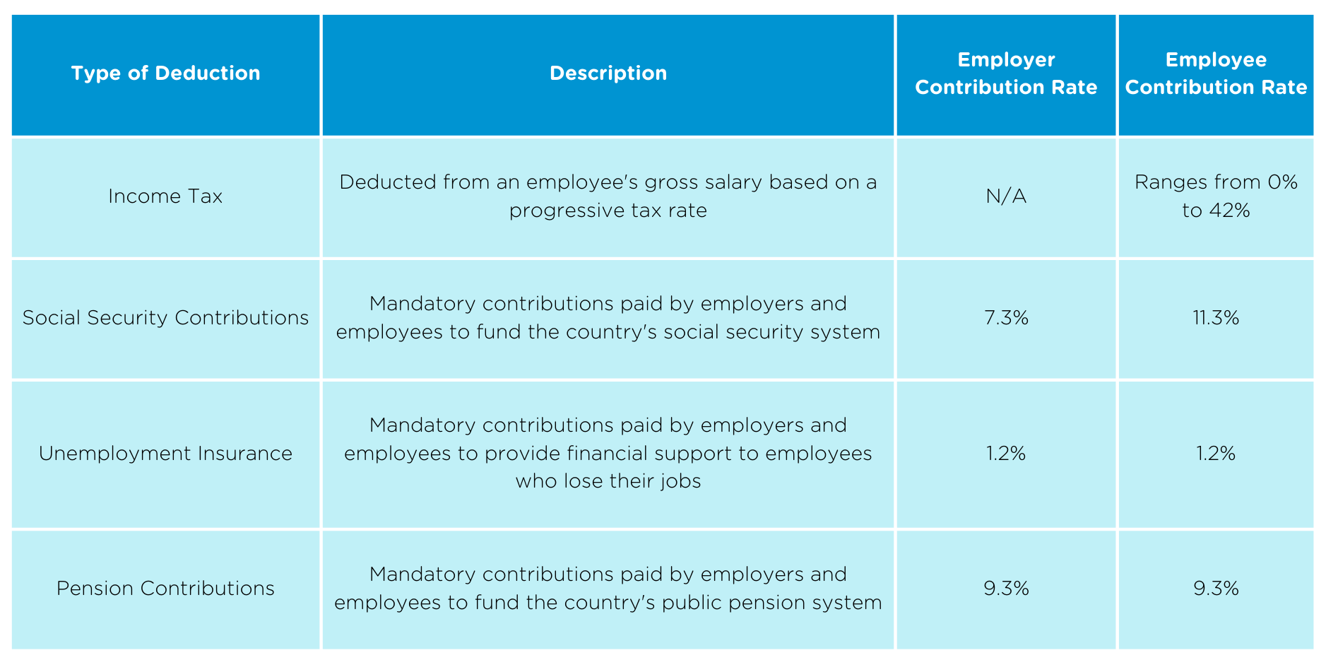 Deducted from an employee’s gross salary based on a progressive tax rate |