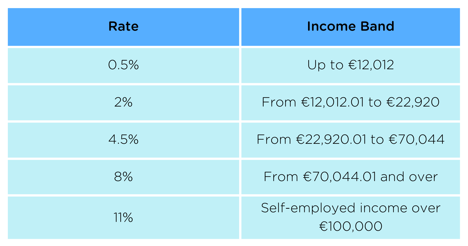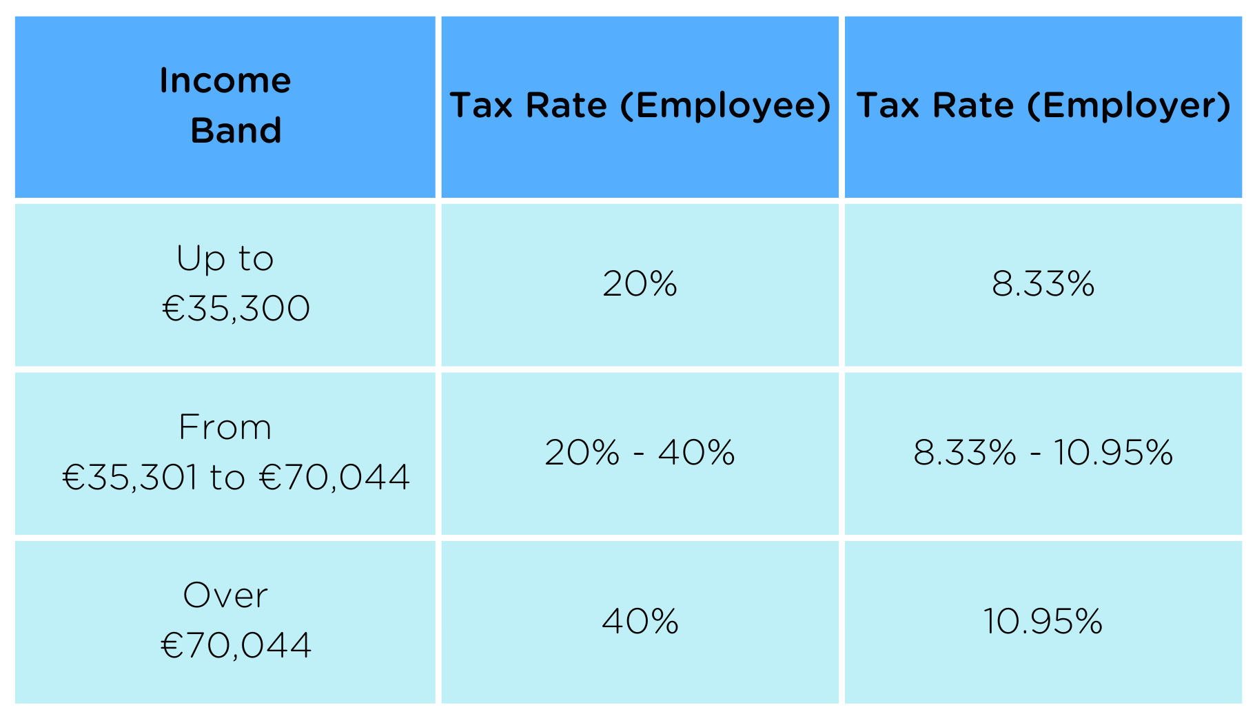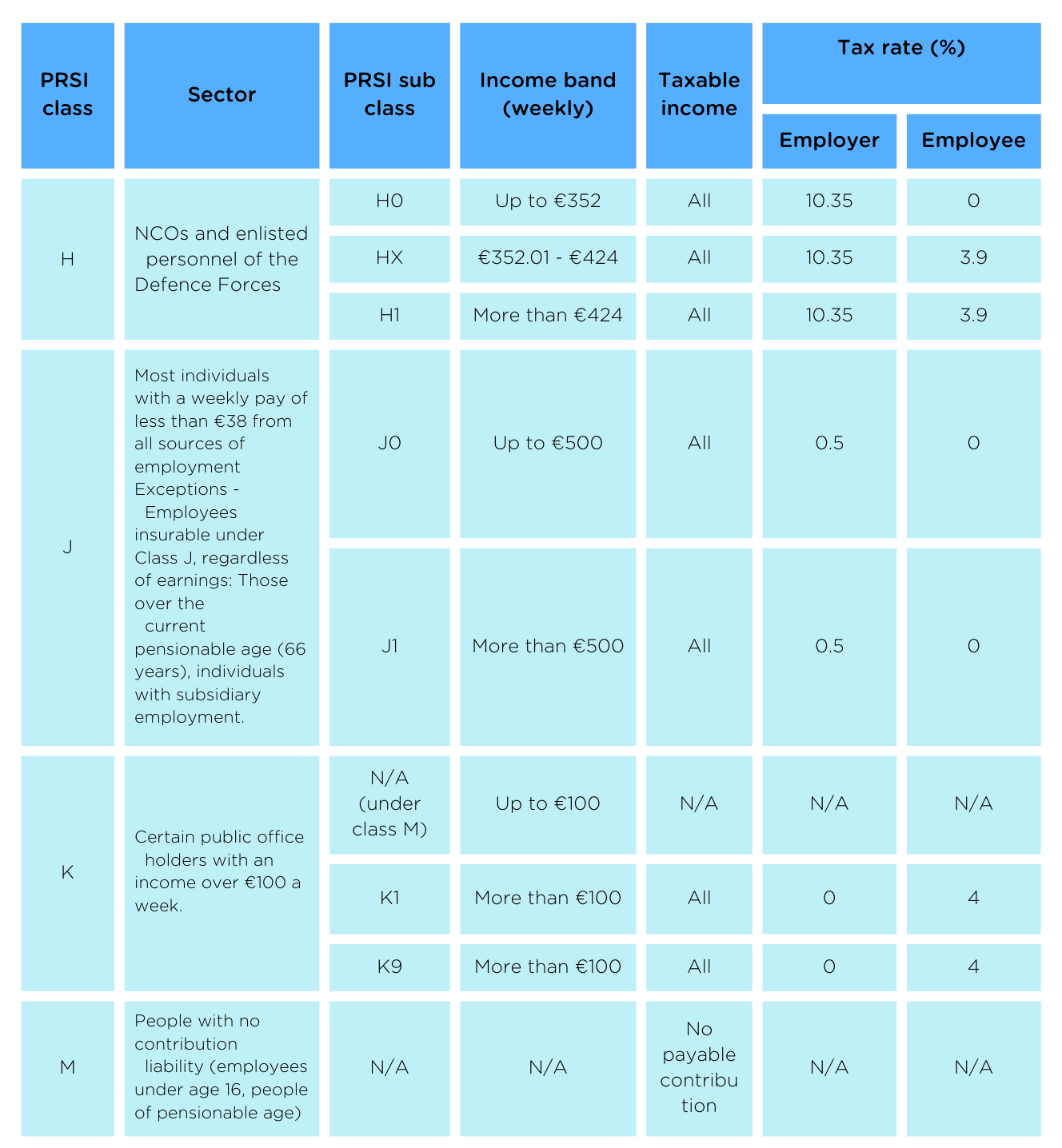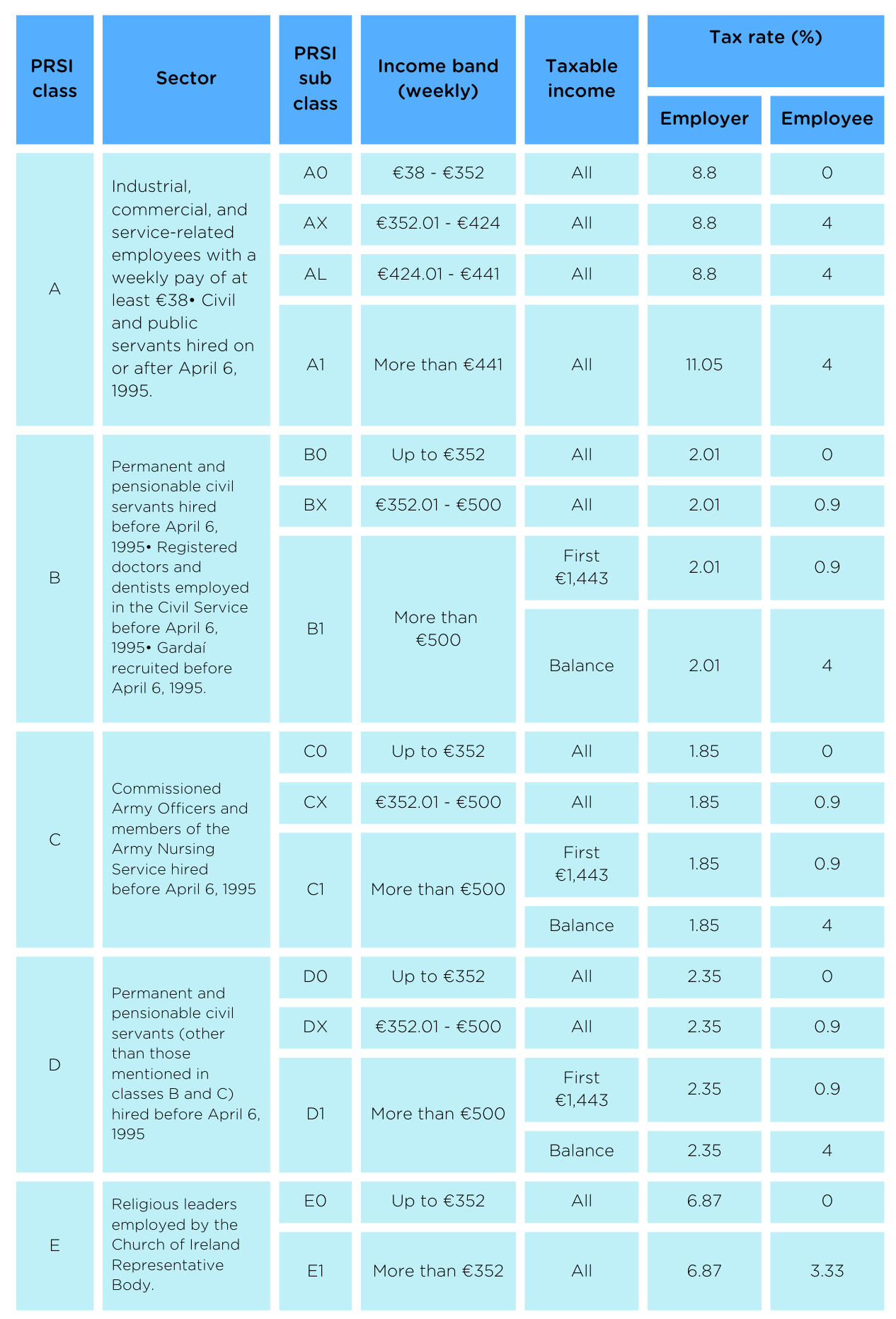 This contribution is a percentage of the employee's gross earnings and funds the country's social insurance program. Please take a look at the PRSI tables in the previous section for more details.
