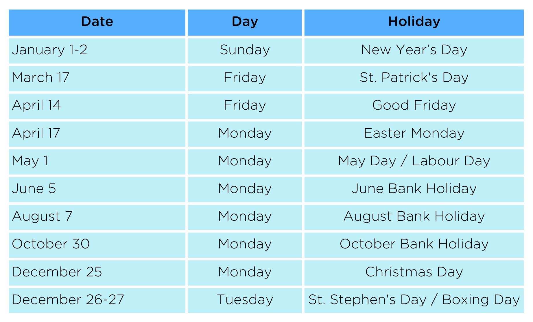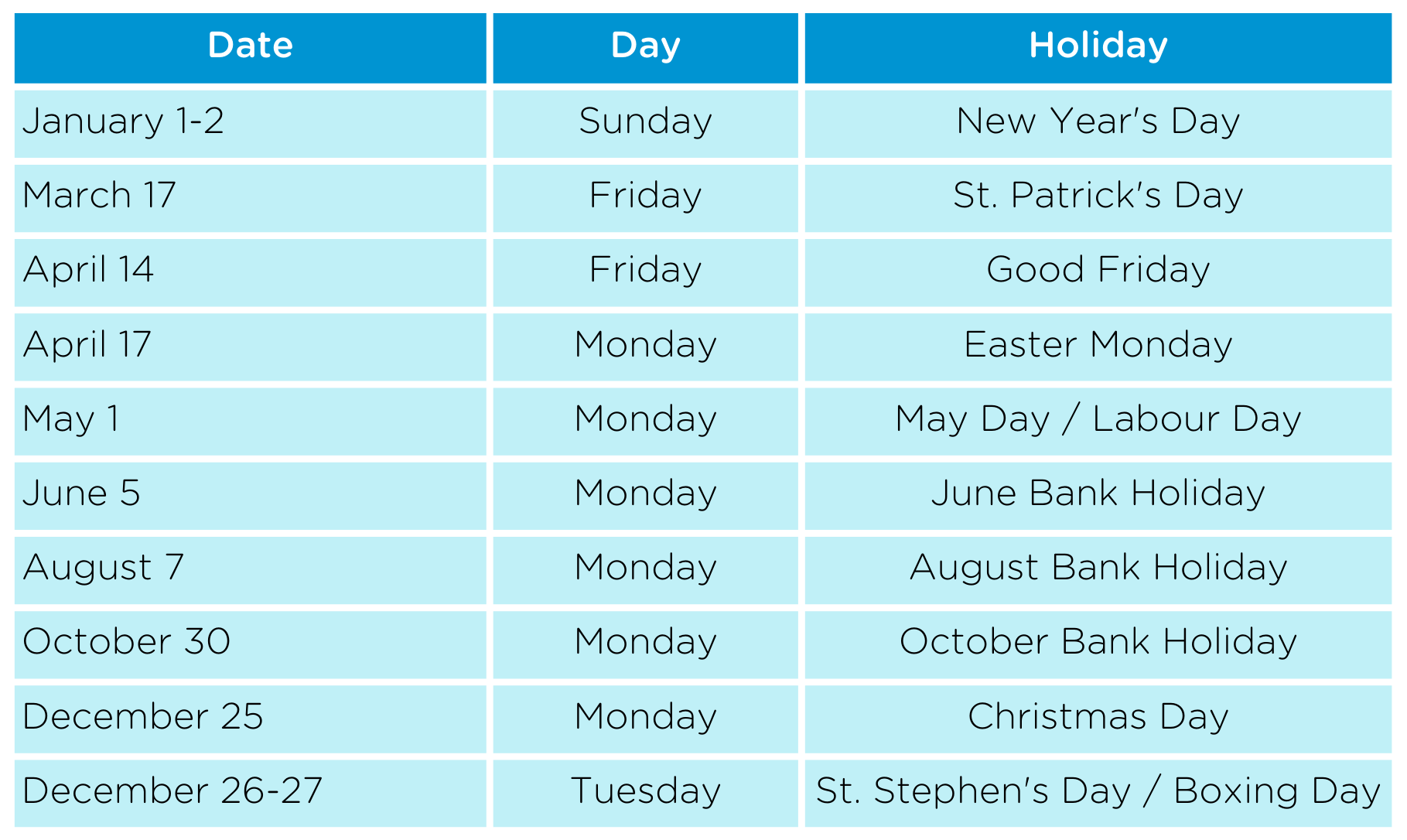 - In Ireland, full-time employees are entitled to a minimum of four weeks of paid annual leave annually