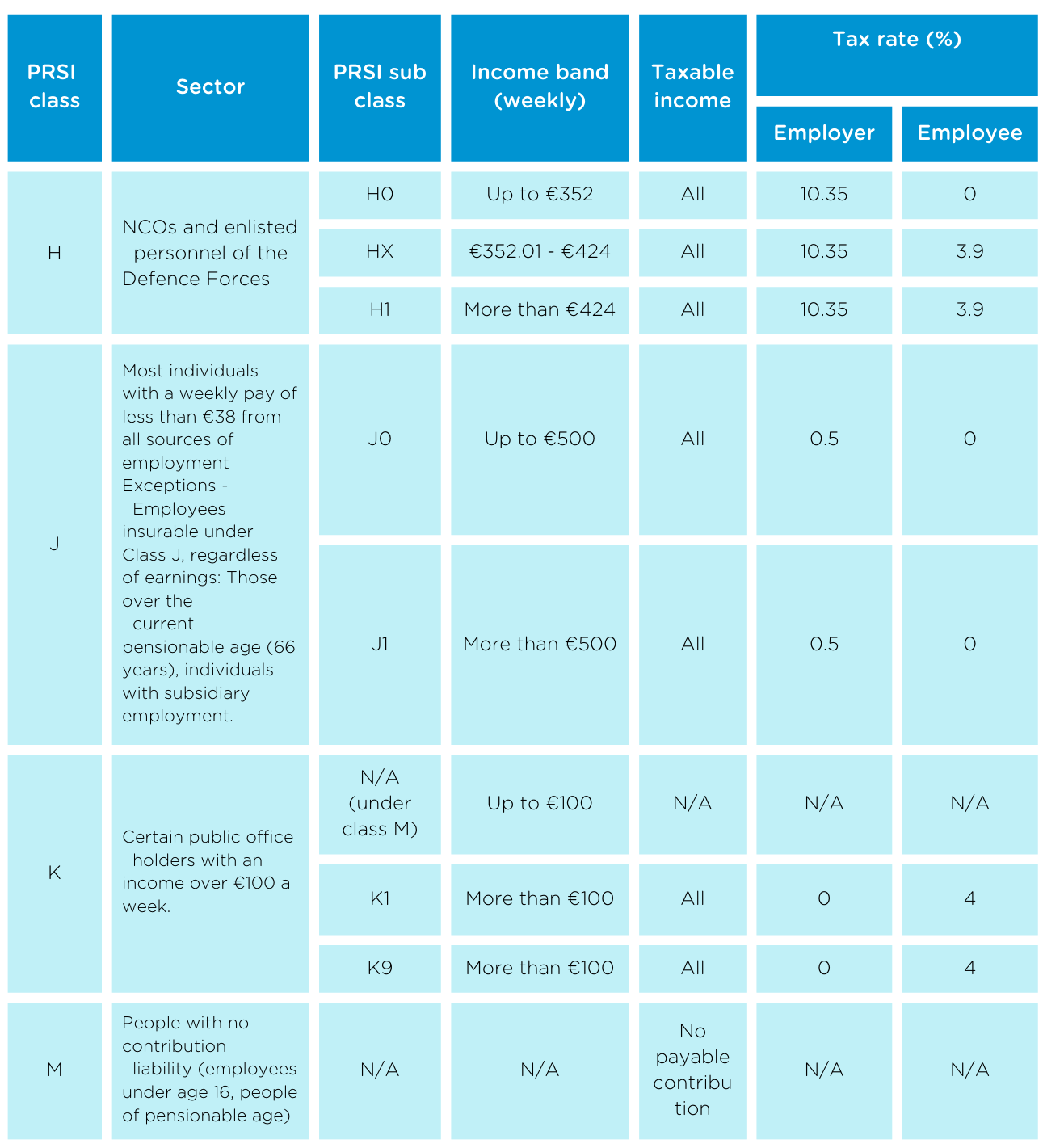 For example, the PRSI rate for Class A employers (which includes most private sector employers) is 10.75%. In comparison, the PRSI rate for Class J employers (which includes employers in the fishing and agricultural industries) is 4.85%.