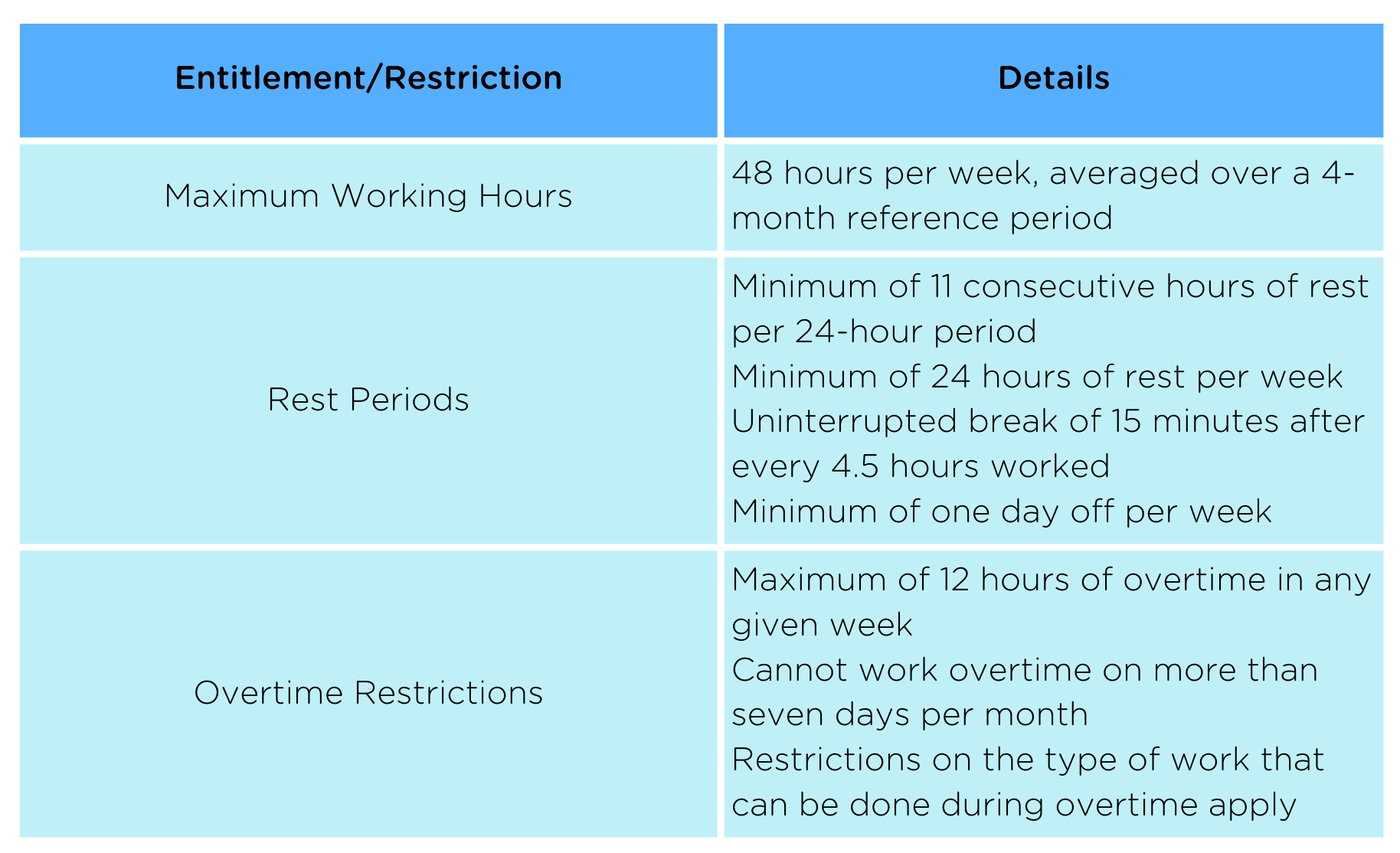 Note: Entitlement is based on standard working hours and includes regular overtime. Part-time entitlement is based on hours worked.