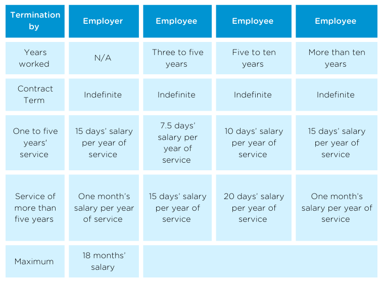 For expatriate employees, there are no social security requirements. However, terminal indemnity payments of 15 days' pay each year for the first three years of employment and two to three months’ salary yearly after that are usually required.